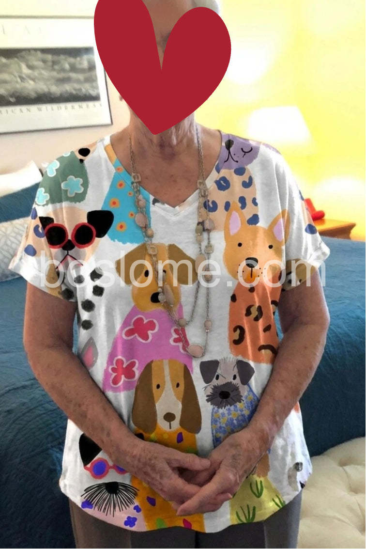 Whimsical Dog Print Short Sleeve Top