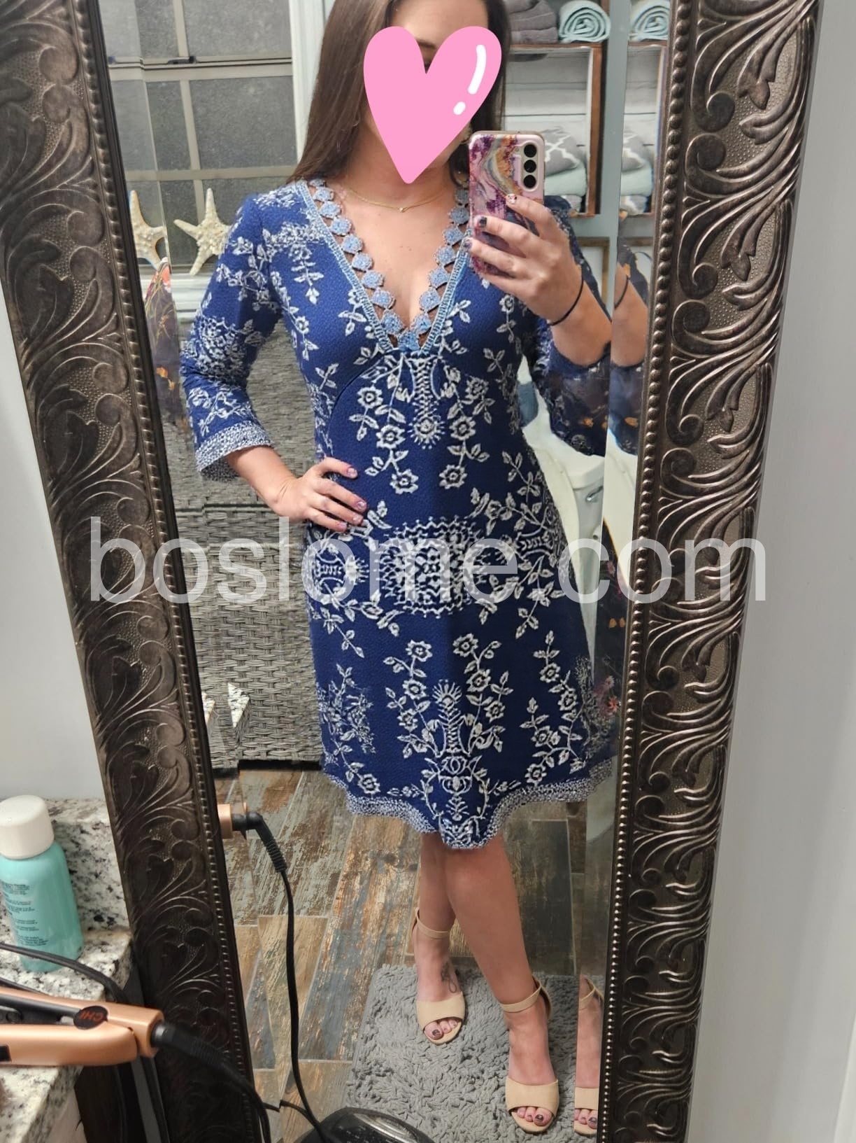 This dress is absolutely stunning! The intricate blue and white pattern is so elegant, and the fit is perfect. It's comfortable enough to wear all day and looks great for both casual outings and more formal events.