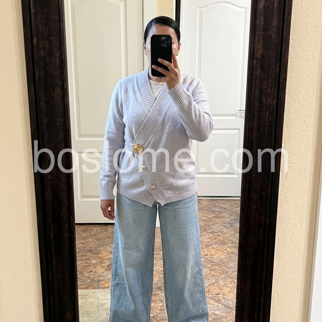 I wore this sweater on a recent trip and absolutely loved it! I went with a size L for an oversized look, but a size M would have worked as well. For reference, I’m 5’8” and 148 lbs. The fabric is super soft, and the style is effortlessly chic. I washed it by hand, and did not use heat to dry it. I highly recommend it.