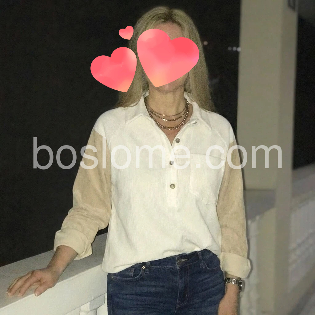I really like this shirt! The color is a soft neutral (cream/ivory) that goes with everything, and the Henley button front looks classic. The fabric feels comfortable and lightweight, and the fit is just right—not too tight. I also like the simple pocket detail on the chest. It’s perfect for casual outfits and looks great for holiday or everyday wear.