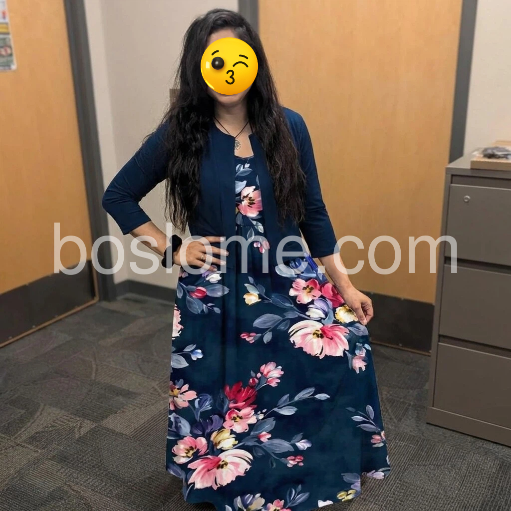 I’m absolutely in love with this dress. So elegant and flattering. The navy base with the vibrant floral print looks rich and eye-catching, and the fit feels just right for everyday wear.