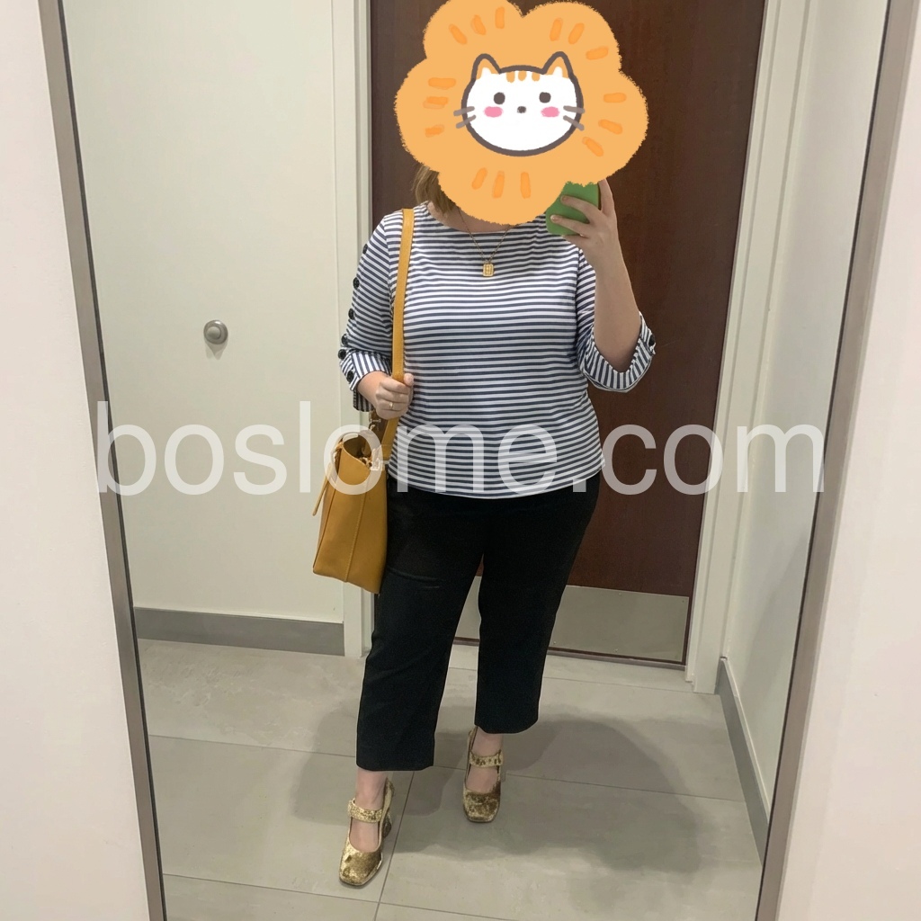 I normally avoid horizontal stripes, but this top is incredibly flattering. The boat neckline is lovely and the button details elevate the whole look.
