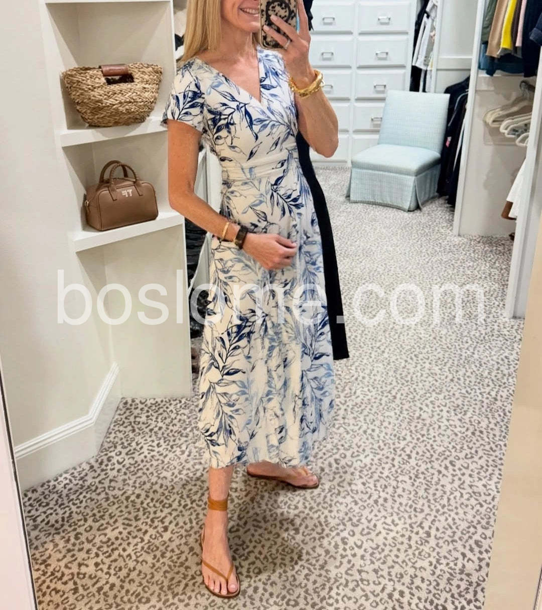 Gorgeous pattern! The blue botanical leaves pop so nicely against the white background. It looks much more expensive than it actually is. It has become my go-to dress for summer date nights.