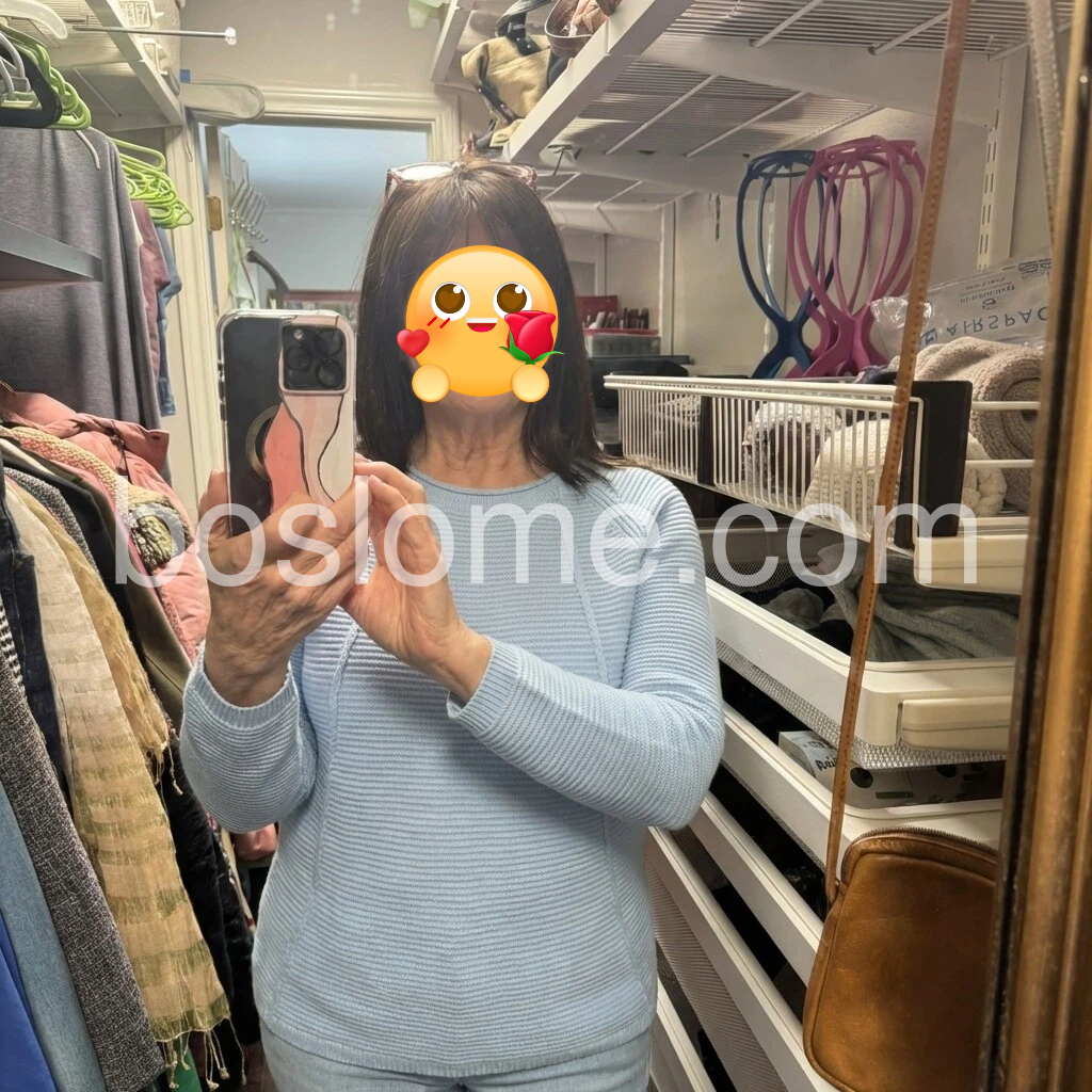I’m obsessed with this baby blue sweater! The ribbed texture adds such a nice subtle detail and the relaxed fit is so comfortable for all-day wear. It’s not scratchy at all and washes well without losing its shape. I’ve worn it to work and weekend brunch and it’s become my most versatile piece.