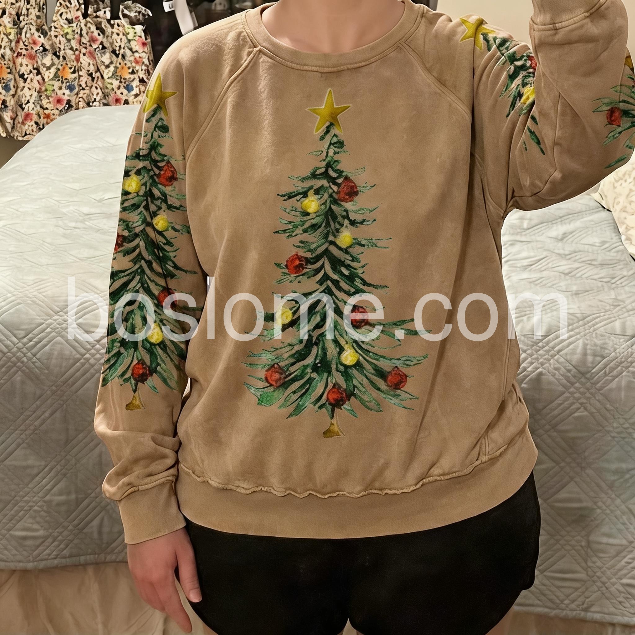 I ordered this sweatshirt because I loved the print! It‘s perfect for christmas. I ordered a medium and would say it fits true to size. The material is soft but I was hoping it would be a bit softer. I’m still giving it a 5 stars because of the pretty color and the fit. It is nice and warm for those colder days and washes up well.