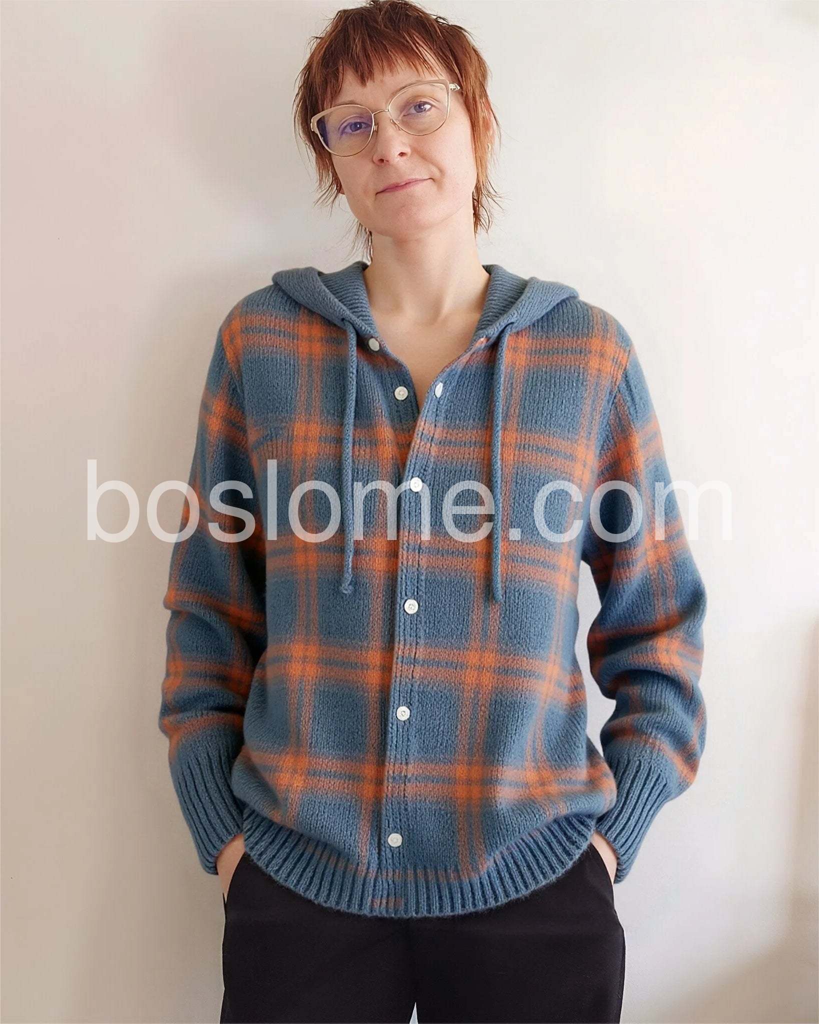 Absolutely love this sweater! The blue and burnt orange colors are perfect for fall. It is super cozy and the hood adds a nice casual touch. True to size and very comfortable for running errands.