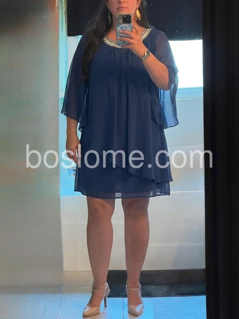 Blue 3/4 Sleeve Plain Mini Dress