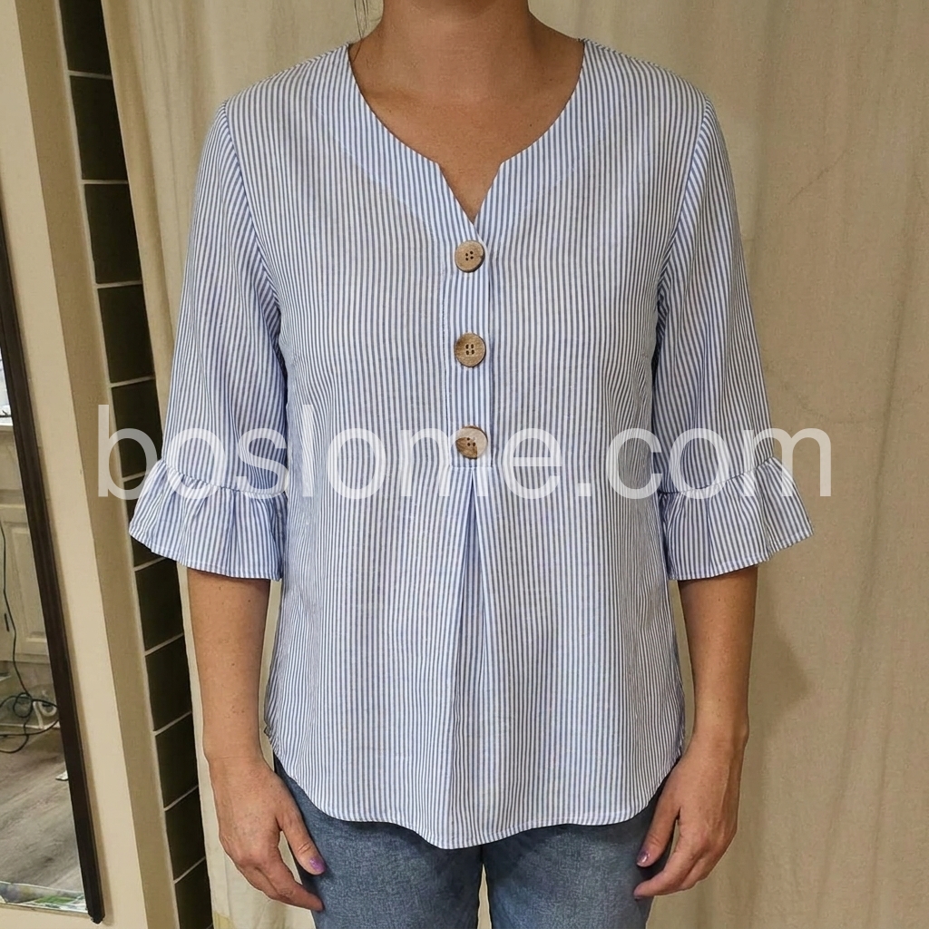 As a designer, I crafted this blouse to solve the common pain point of "too casual or too formal" daily tops. The notched V-neck flatters all necklines, while the ruffled cuffs add a feminine touch without being overly frilly.
