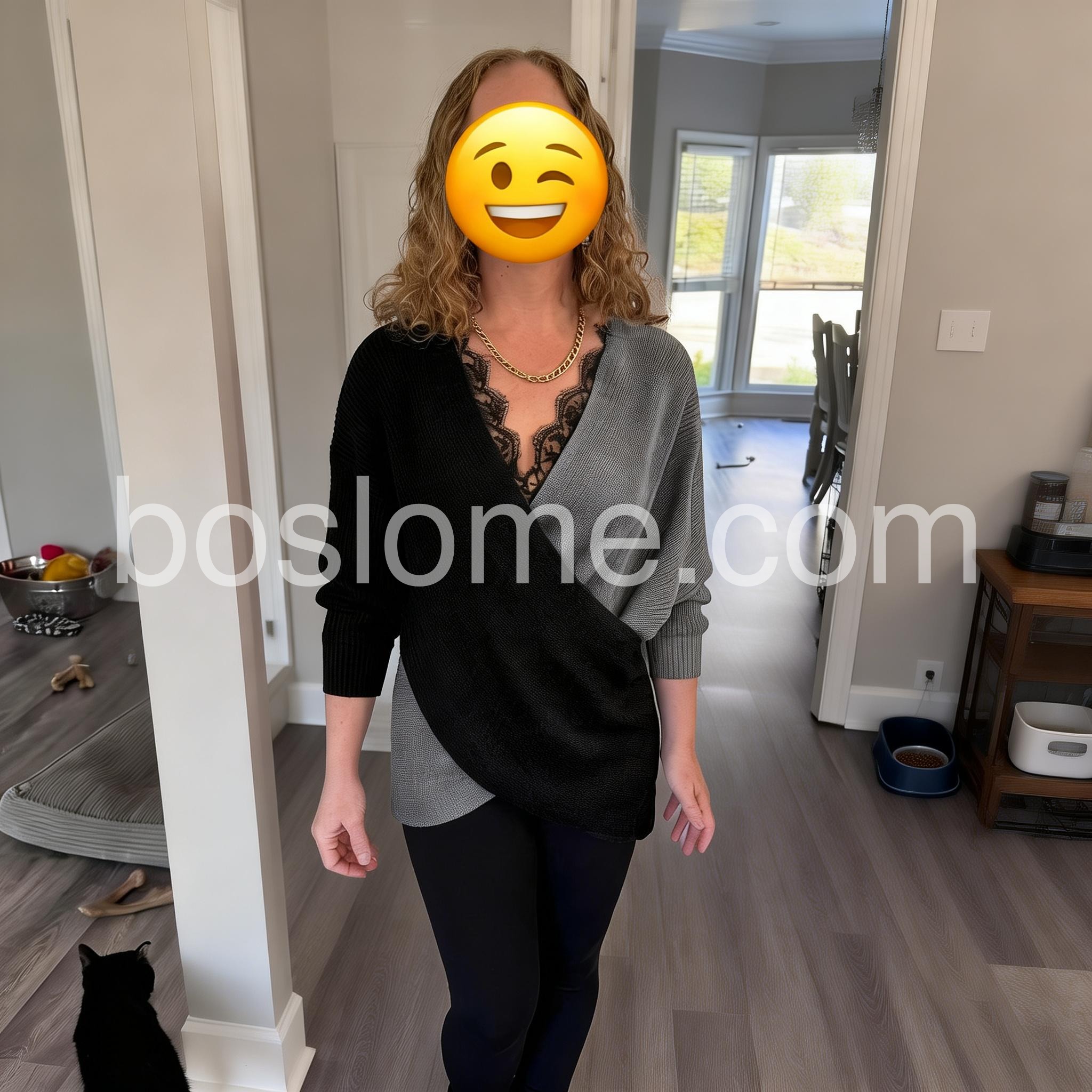 Indulge in this ultra-luxurious sweater, perfect for slightly cooler nights and days! This cozy knitted sweater features a black and gray side that gives way to a plunging v-neckline, along with billowy fitted sleeves for a chic look that is trendy and elegant. Wear this below the waist sweater with your favorite layering necklaces, jeans, skirt, tall boots, heels, or flats.