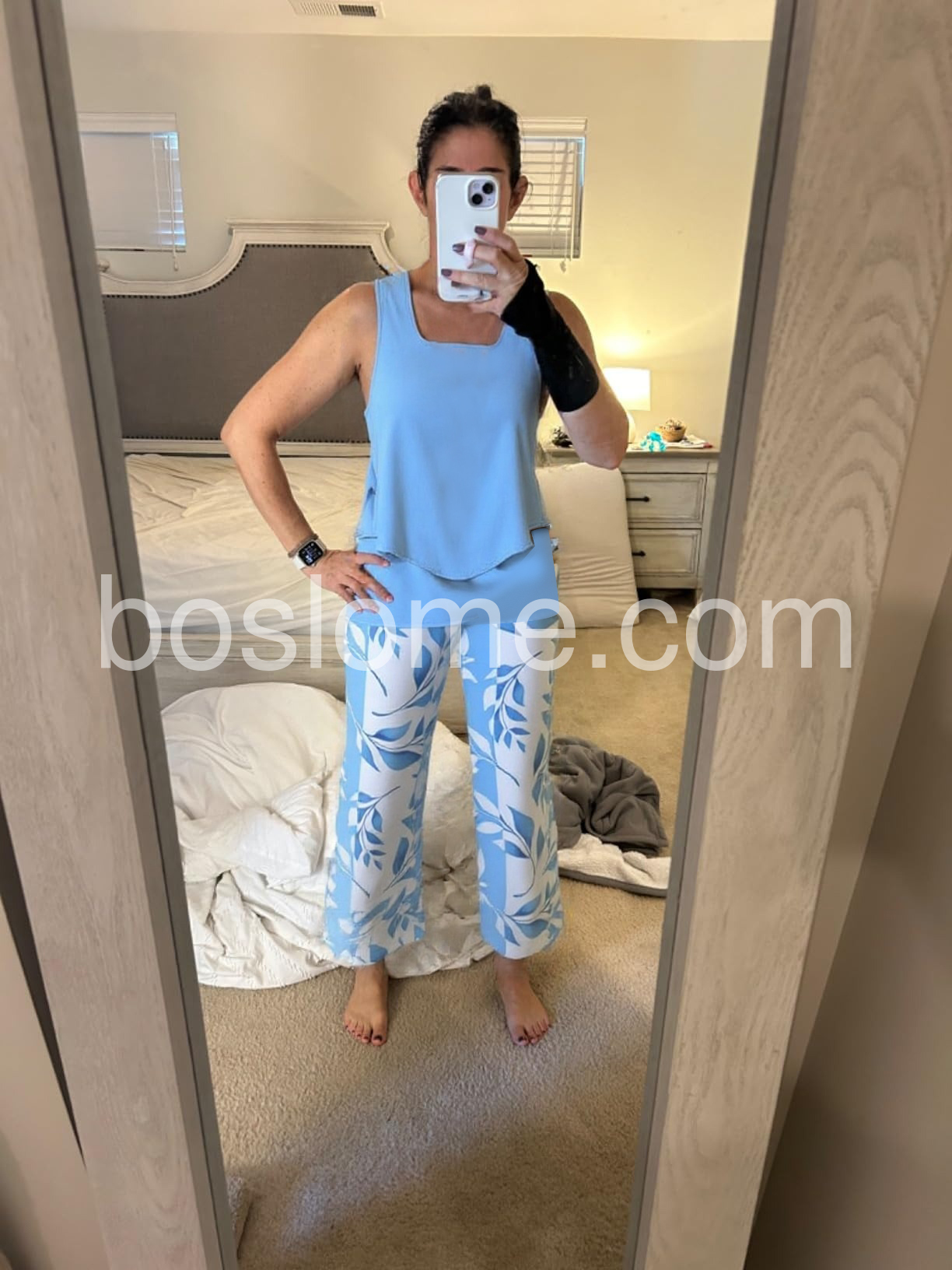 Get your summer style on point with this Blue Plant Print Square Neck Two Piece Set. Made with a stunning blue plant print design, this set features a square neck and is perfect for any warm day. Stay trendy and comfortable all day long with this must-have set.