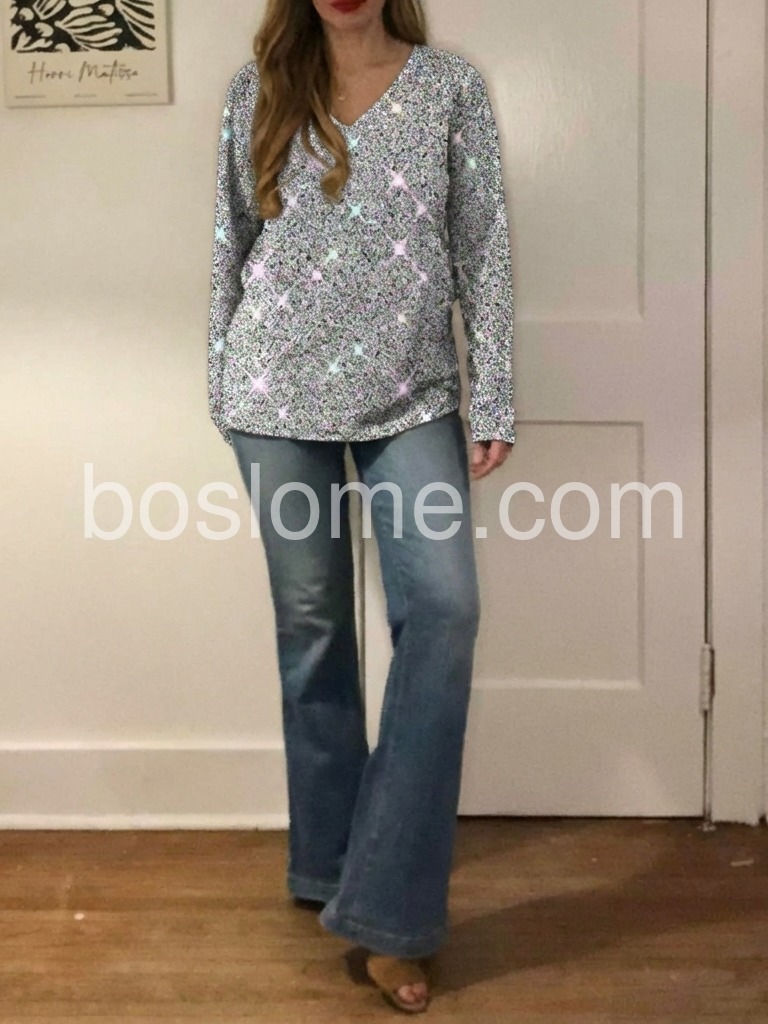 Disco Ball Tinsel Metallic Print Long Sleeve Top
