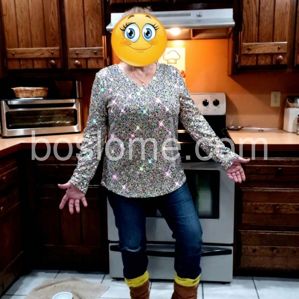 Nothing but fun disco times head with this holiday top! This cheerful top features a total glam disco ball metallic print, perfect for adding fun-loving vibes and seasonal cheer this winter and beyond. The long sleeves, waist-length fit, and round collar provide the right amount of coverage for cooler nights and days.