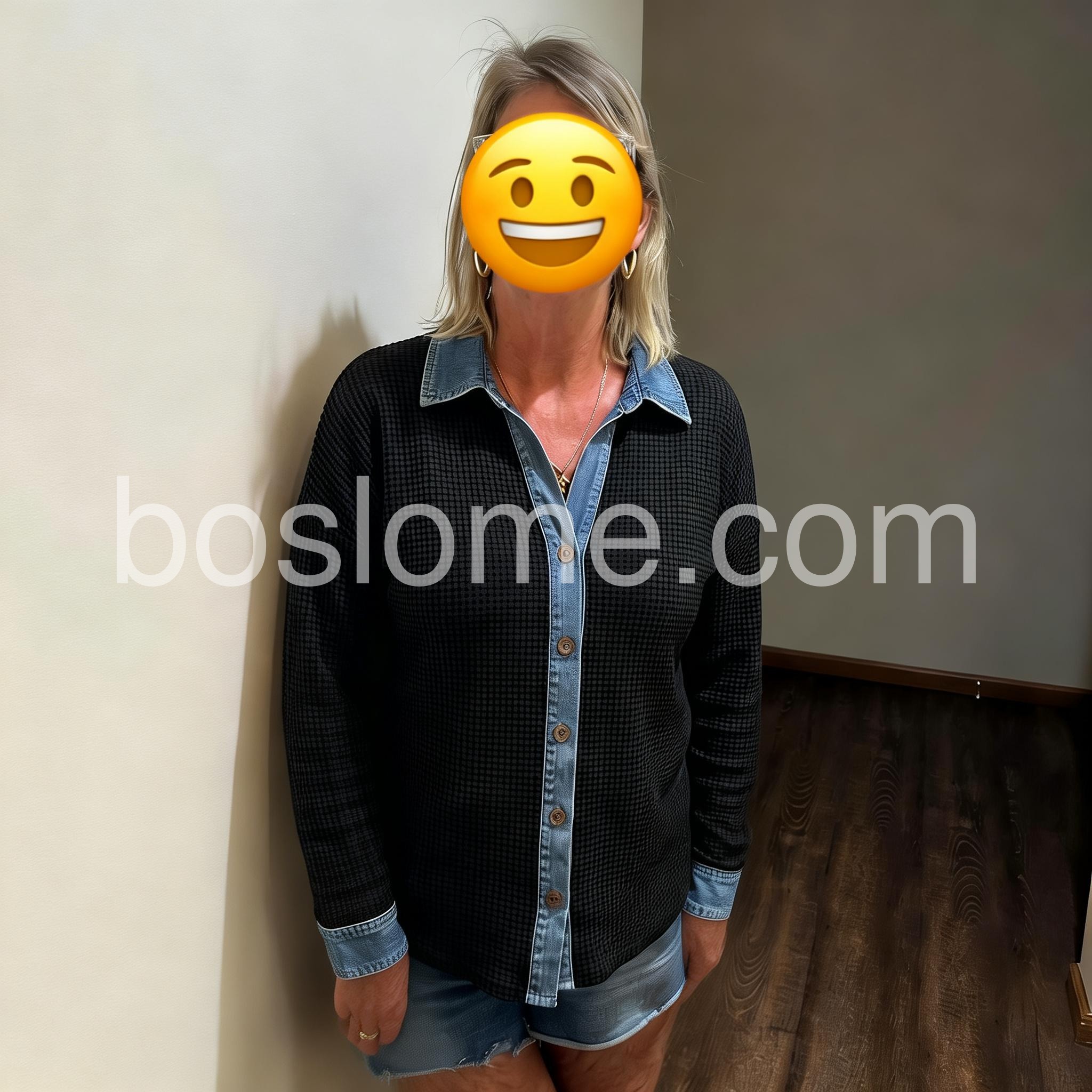 This top is amazing! The material is fantastic, it's thick, and the denim details on the collar and cuffs give it a special touch. Highly recommended!