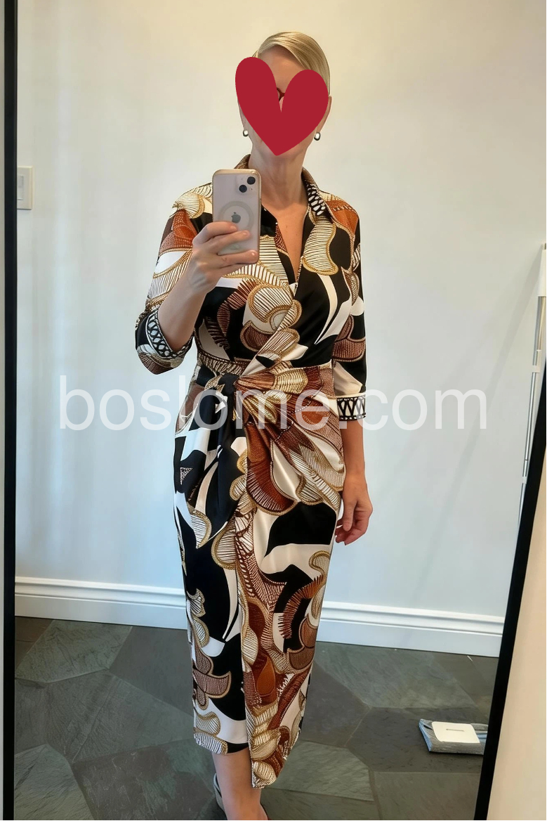 This dress is a winner. The print is eye-catching and the fit is incredibly slimming. I love the collar detail, it adds a touch of class. It washed well on a delicate cycle and hung to dry with no issues. Very happy with this purchase!