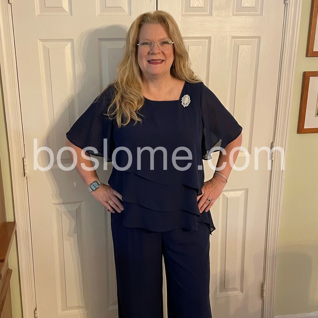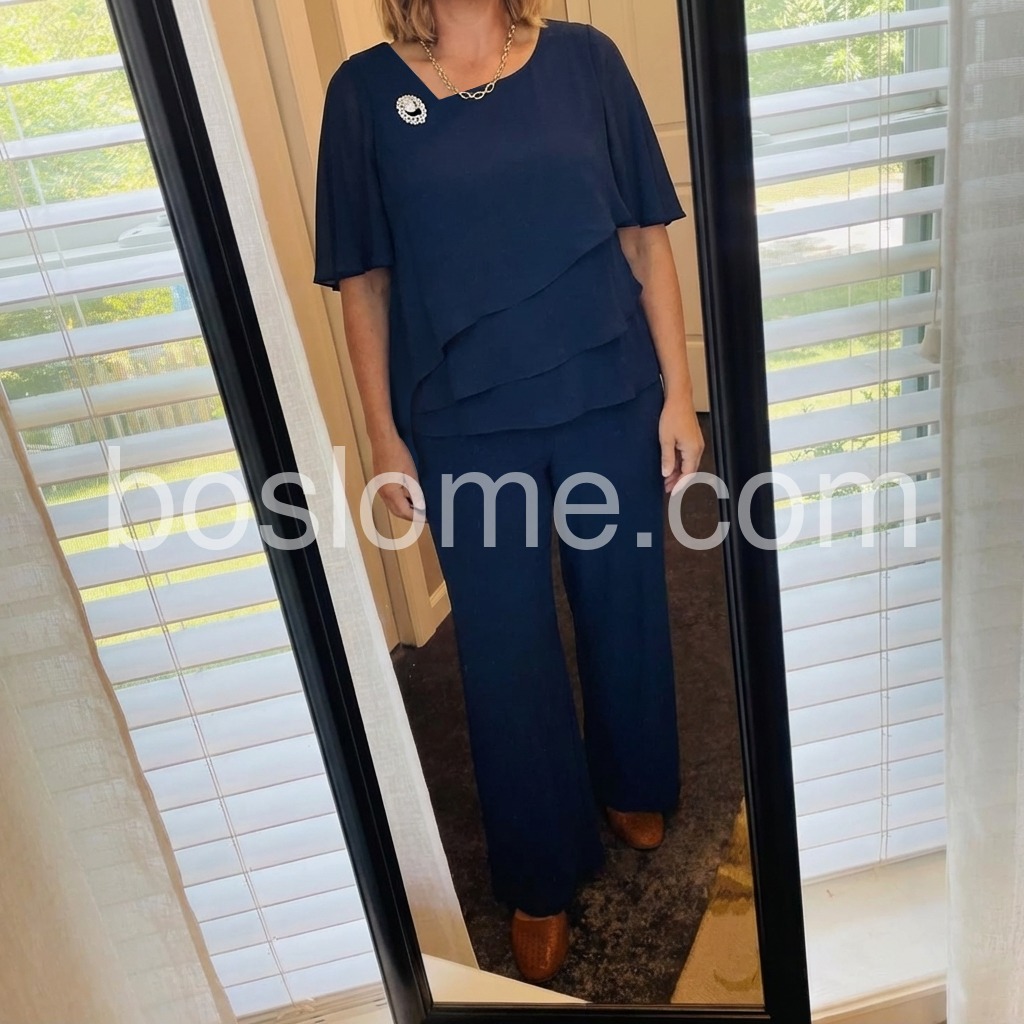 Thisย coordinated setย features a flowy layered top with an asymmetrical hem and matching wide-leg pants. Crafted from smooth, comfortable fabric perfect for warm days. The clean lines and classic navy hue offer timeless style. Ideal for casual outings or relaxed events. Effortlessly chic and easy to wear.