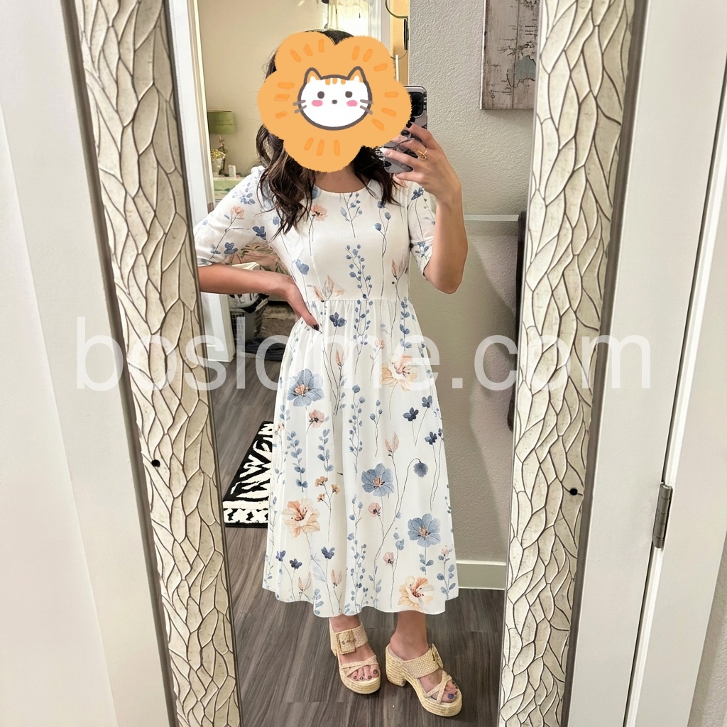 I crafted this dress to bring soft, romantic charm to your wardrobe. The watercolor floral print feels fresh and modern, avoiding overly sweet designs that date quickly.