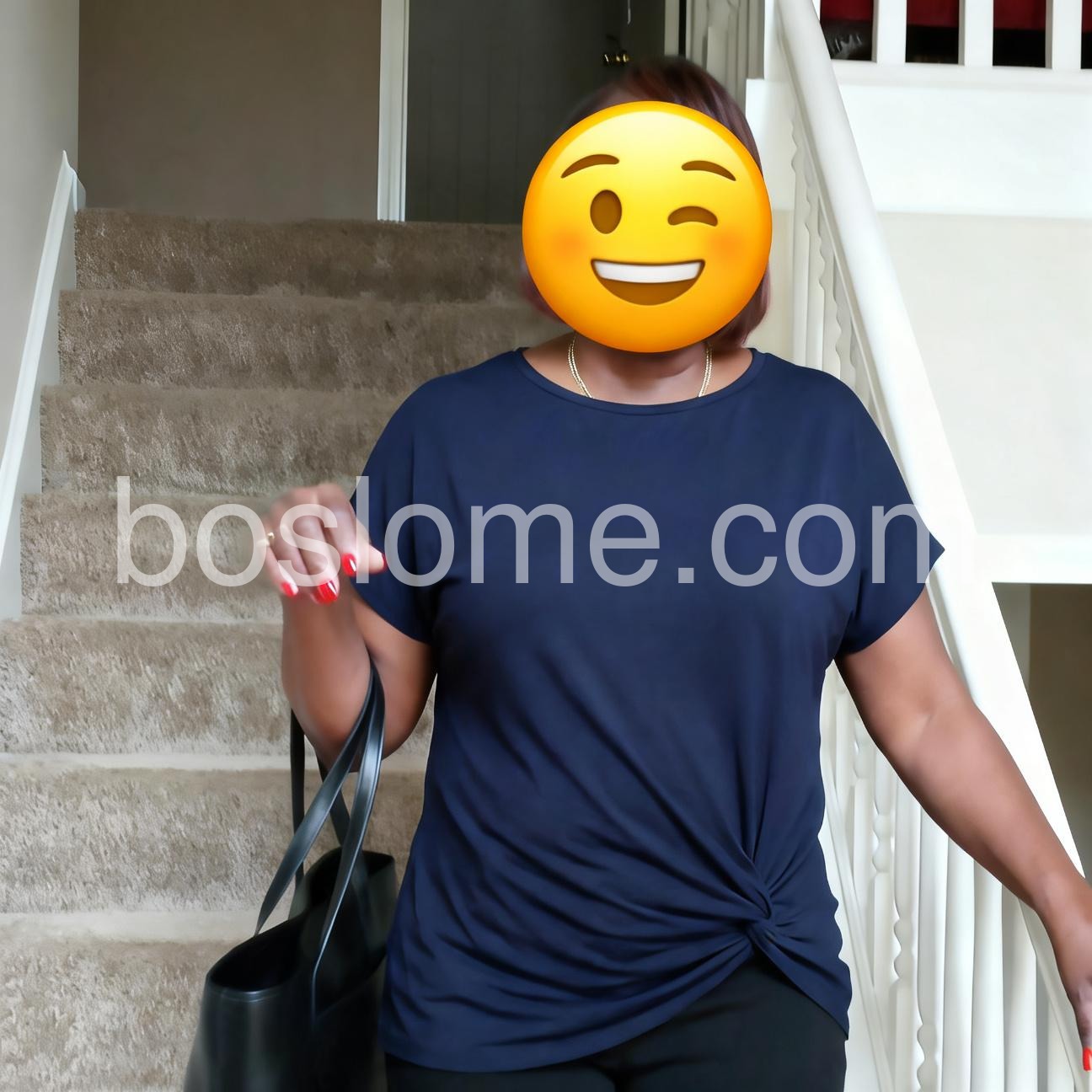 This navy blue short sleeve top is a versatile and stylish addition to any wardrobe. The tres chic front knot exudes a total retro flair, while the crew neck and short sleeves create a casual and comfortable vibe. The below-the-waist silhouette makes it easy to pair with denim, slacks, and leggings.