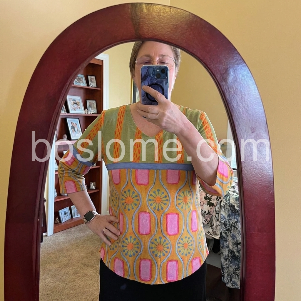 This has quickly become my go-to shirt for running errands. It is casual but stylish enough that I feel put together. The fit is relaxed, and the colors are very flattering on my skin tone.