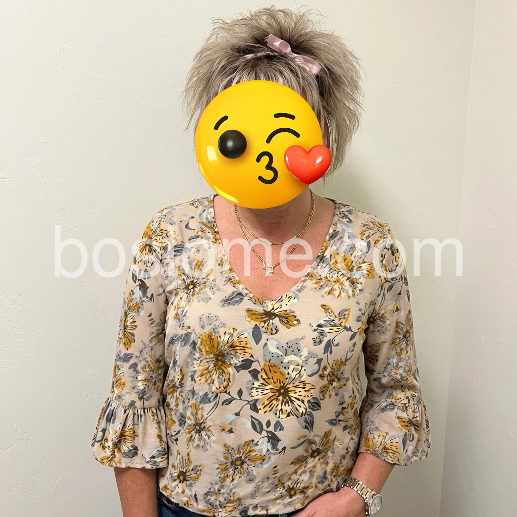 Love this floral blouse! The V-neck is flattering, the sleeves give it a cute touch, and the fabric feels soft and comfortable. Great quality and true to size.