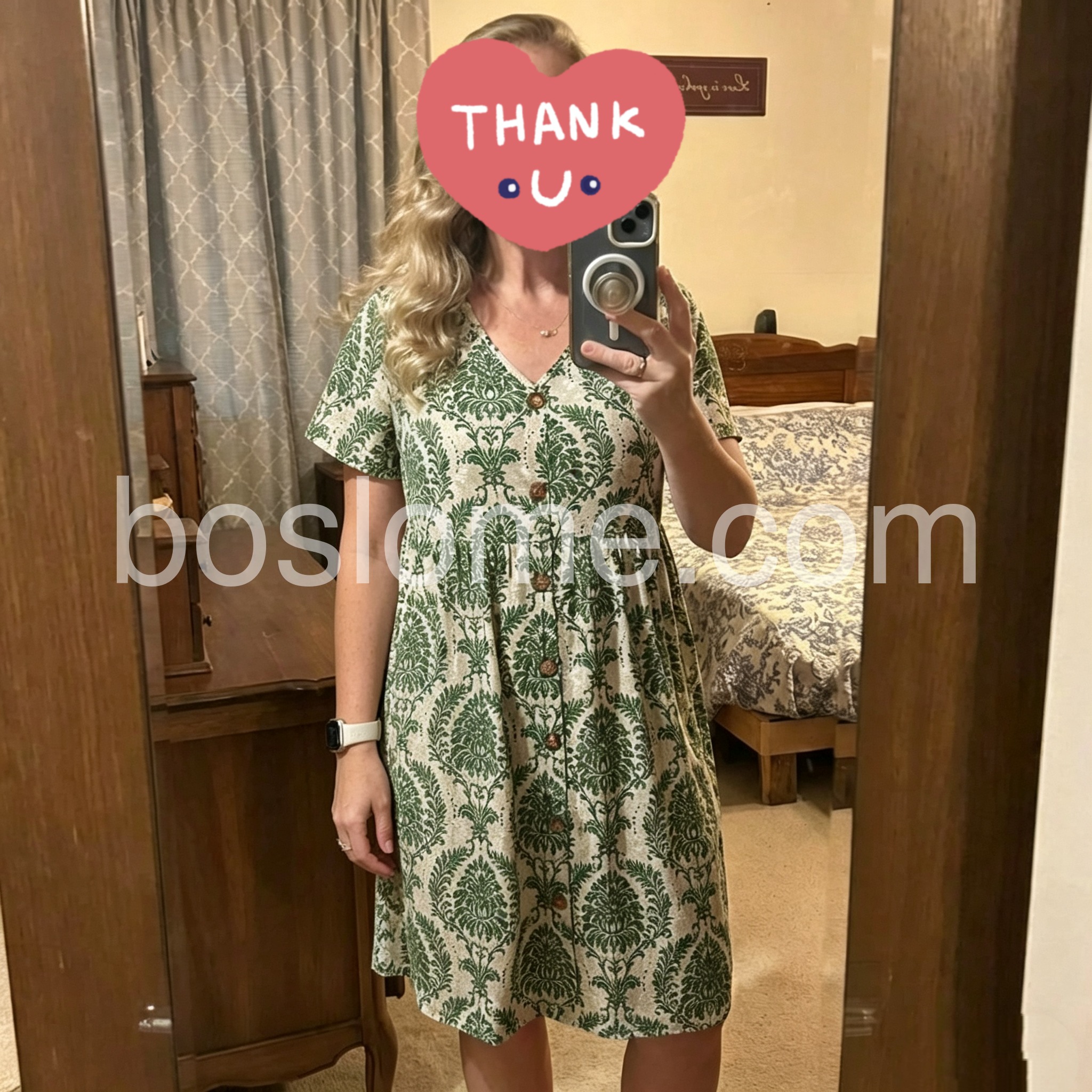 This dress is absolutely perfect for hot summer days. The fabric is light and breathable, and the green pattern is gorgeous. I wore it to a weekend brunch and felt so comfortable.