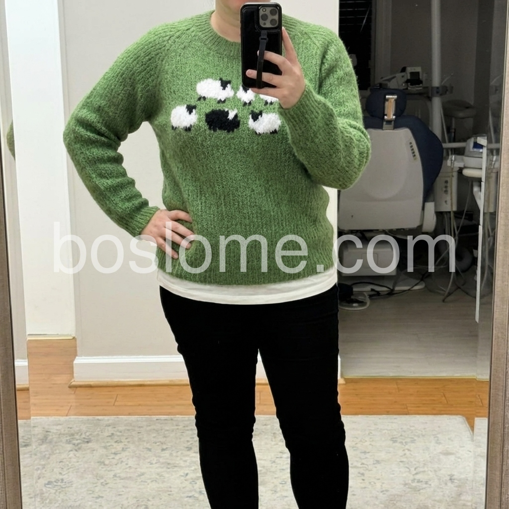 Green Long Sleeve Print Sweater