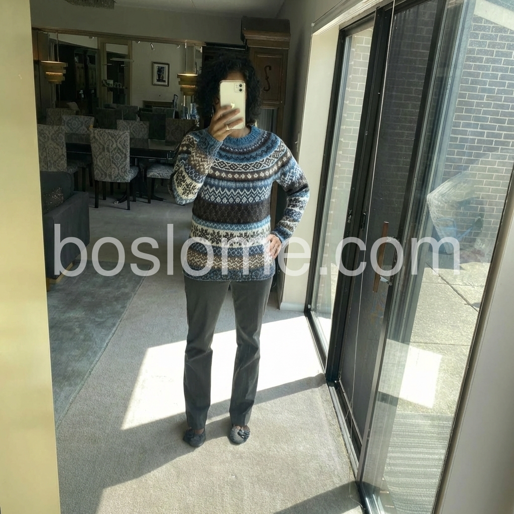 Nice sweater with a classic Scandinavian look. The material feels sturdy and comfortable, and the design doesn’t look cheap or overly busy. I’ve worn it to work on colder days and got compliments immediately. It’s also easy to style—pairs well with almost anything casual.
