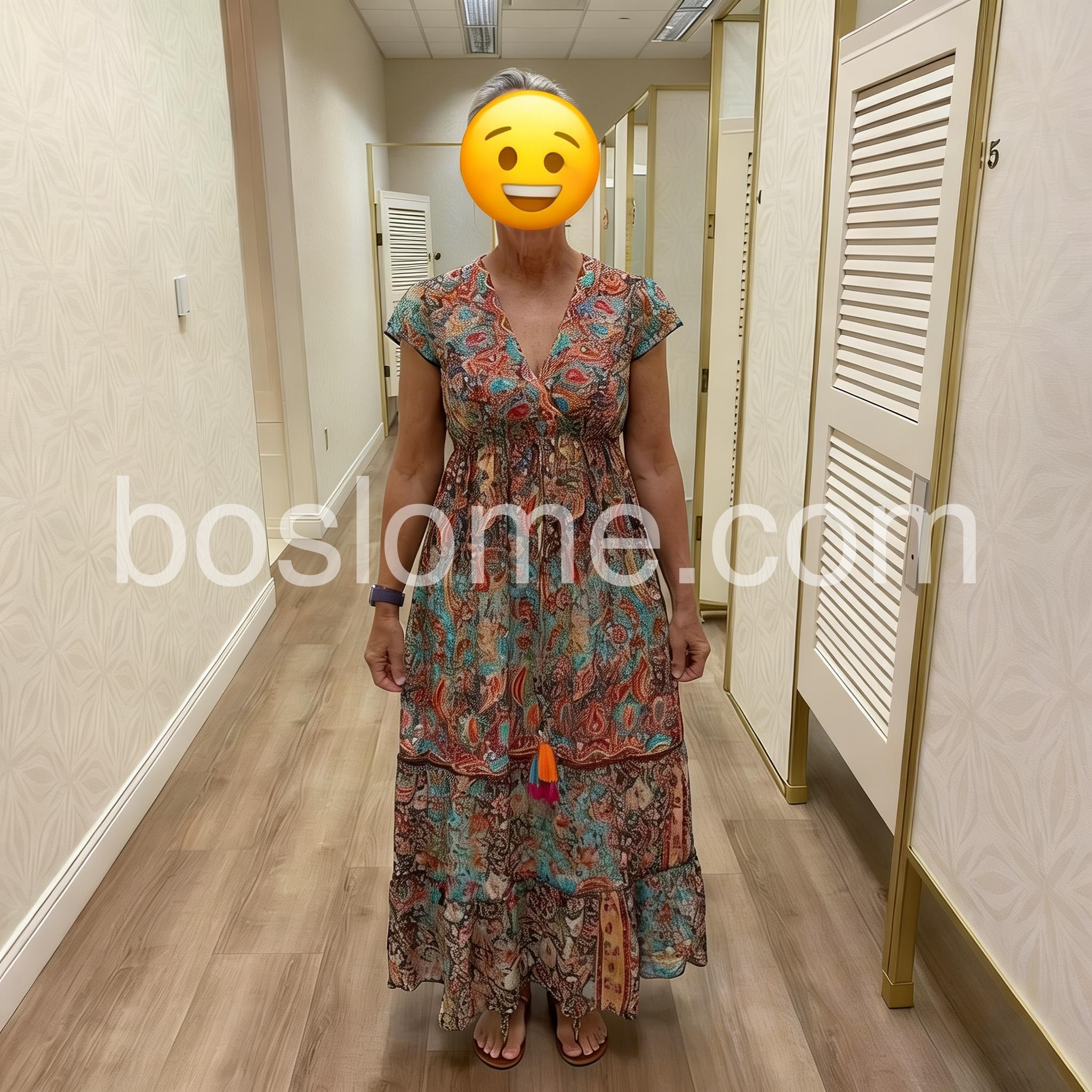 Introducing our elegant and versatile Special Multicolor V-Neck Maxi Dress. Crafted with a flattering v-neck design and made with high-quality material, this dress is perfect for any occasion. With a stunning multicolor pattern, this dress is sure to make a statement. Elevate your wardrobe with this must-have piece.