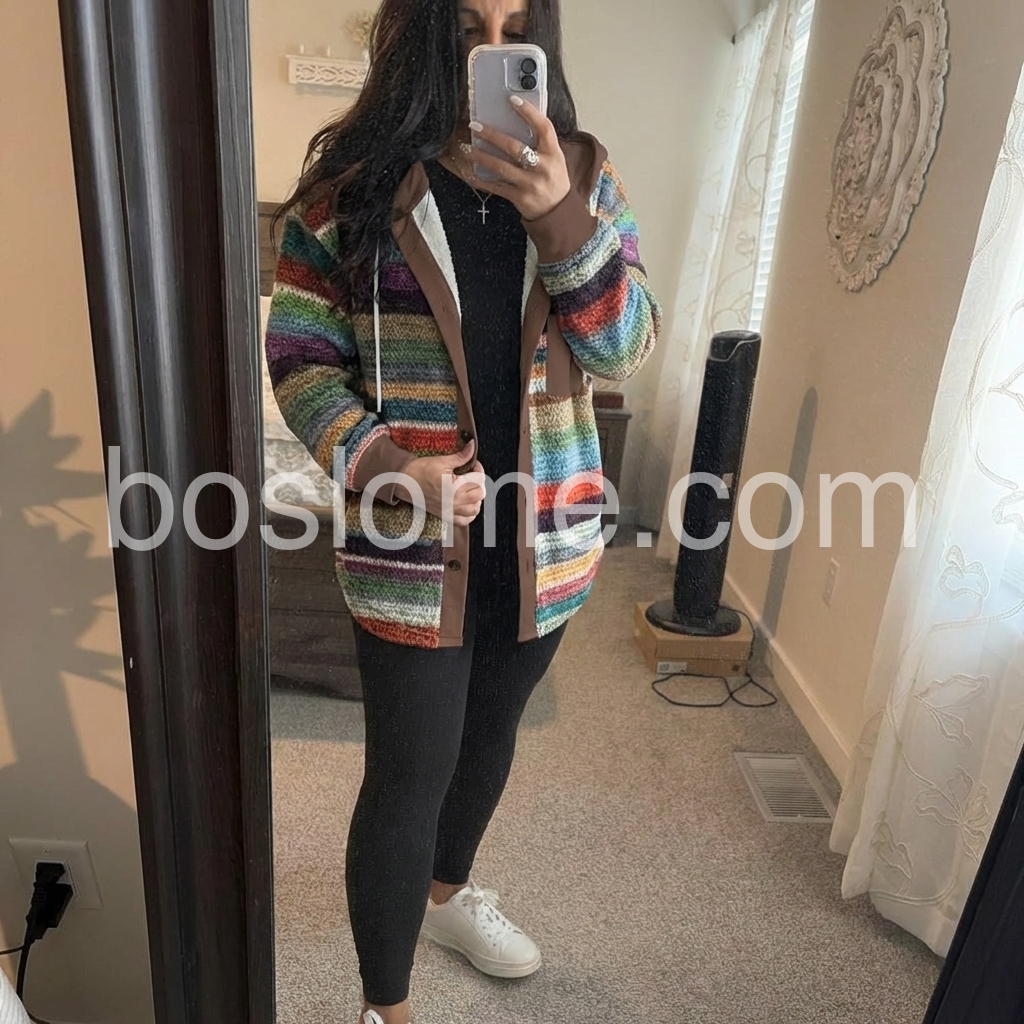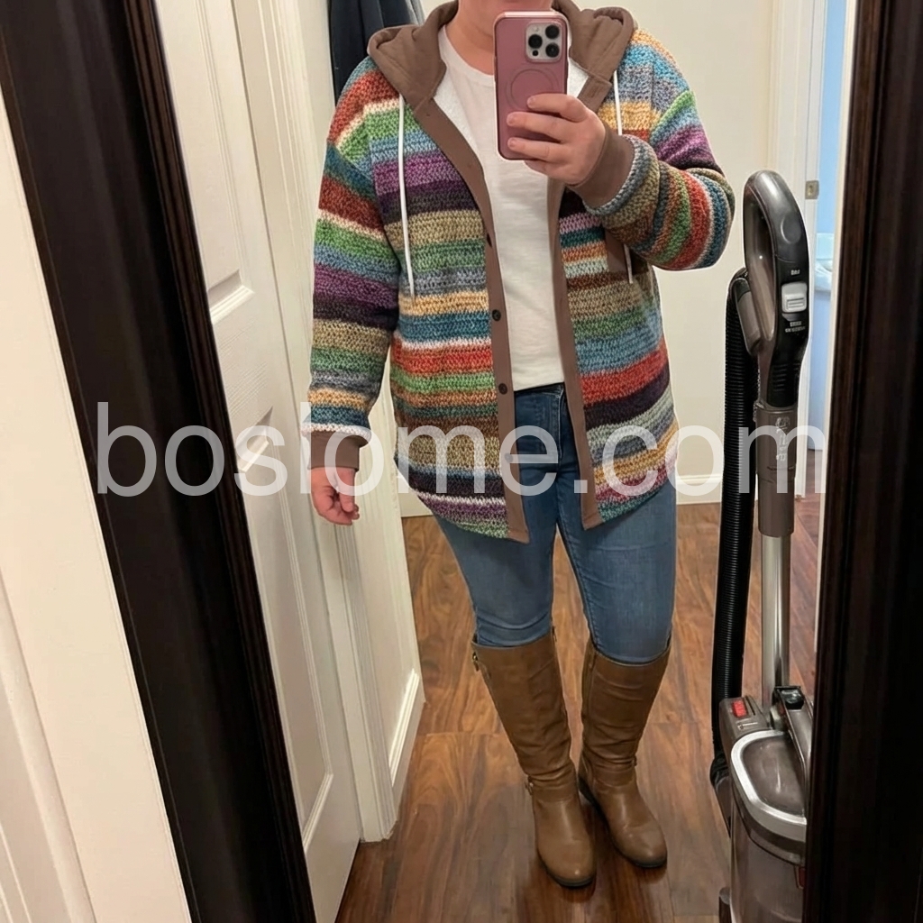 Warm, comfortable. I wear it as a shirt and it looks great with jeans or with leggings. It washes well and it’s true to size.