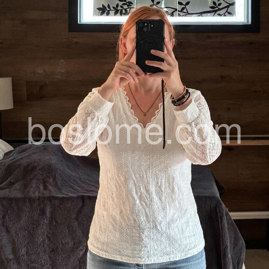 Experience comfort and style with our White Plain V-Neck Long Sleeve Top. Made with soft fabric, this top features a flattering V-neck design and long sleeves for a chic look. Perfect for any casual or dressy occasion, it's a versatile addition to your wardrobe.