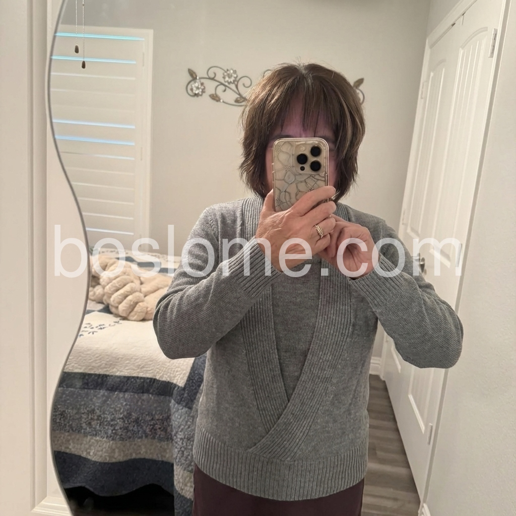 Gray V-Neck Twofer Long Sleeve Sweater