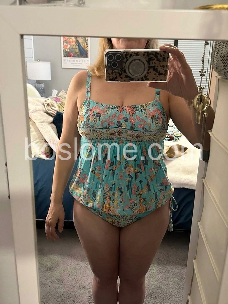 Time to get ready for summer with this flirty little number! This adorable sleeveless tankini features a feminine and chic pattern with total coverage, making it perfect for wearing to the beach, pool, pool party, and so much more. A retro-inspired floral print and bright blue aqua turquoise color make this tankini swimsuit your favorite go-to vacation swimsuit.
