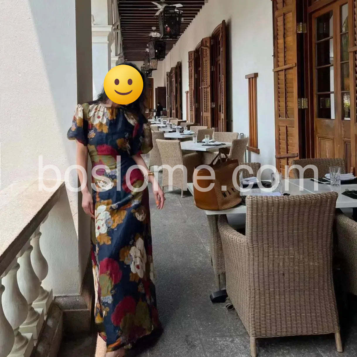 This navy maxi dress features a classic round neck and short sleeves for a timeless look. Made with high-quality fabric, it ensures comfort and durability. Perfect for any occasion, this dress will make you feel effortlessly chic and sophisticated.