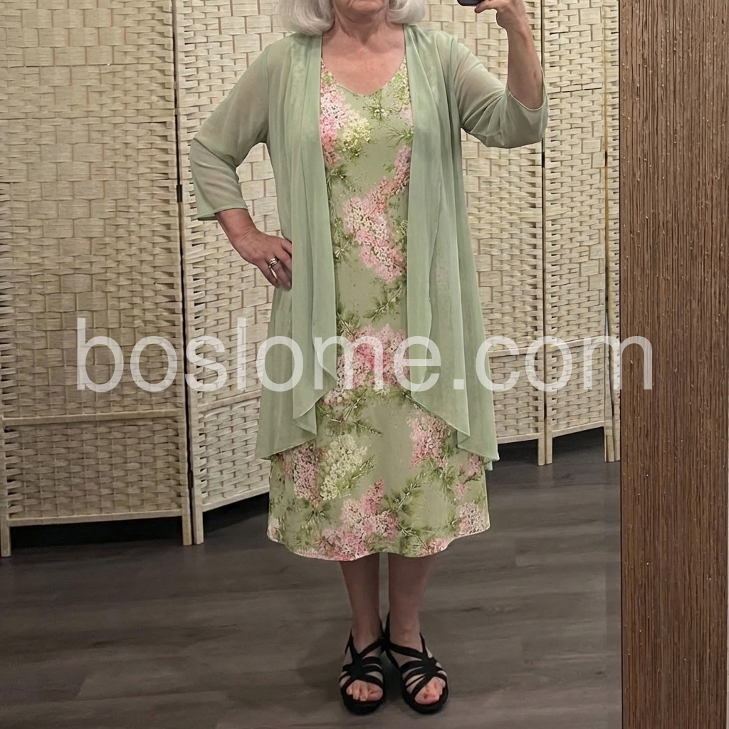 Thisย soft floral dressย features a light green base with pink and white blossoms. Paired with a matching sheer duster for a layered look. V-neckline and relaxed fit perfect for warm days. Ideal for garden parties or casual outings. Fresh and feminine style.